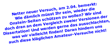 Besonders lustig (und besonders aussagefähig) ist es ja, wenn bestimmte Seiten auf unseren Homepages mit bestimmten Erkenntnissen über bestimmte Personen gehackt werden: